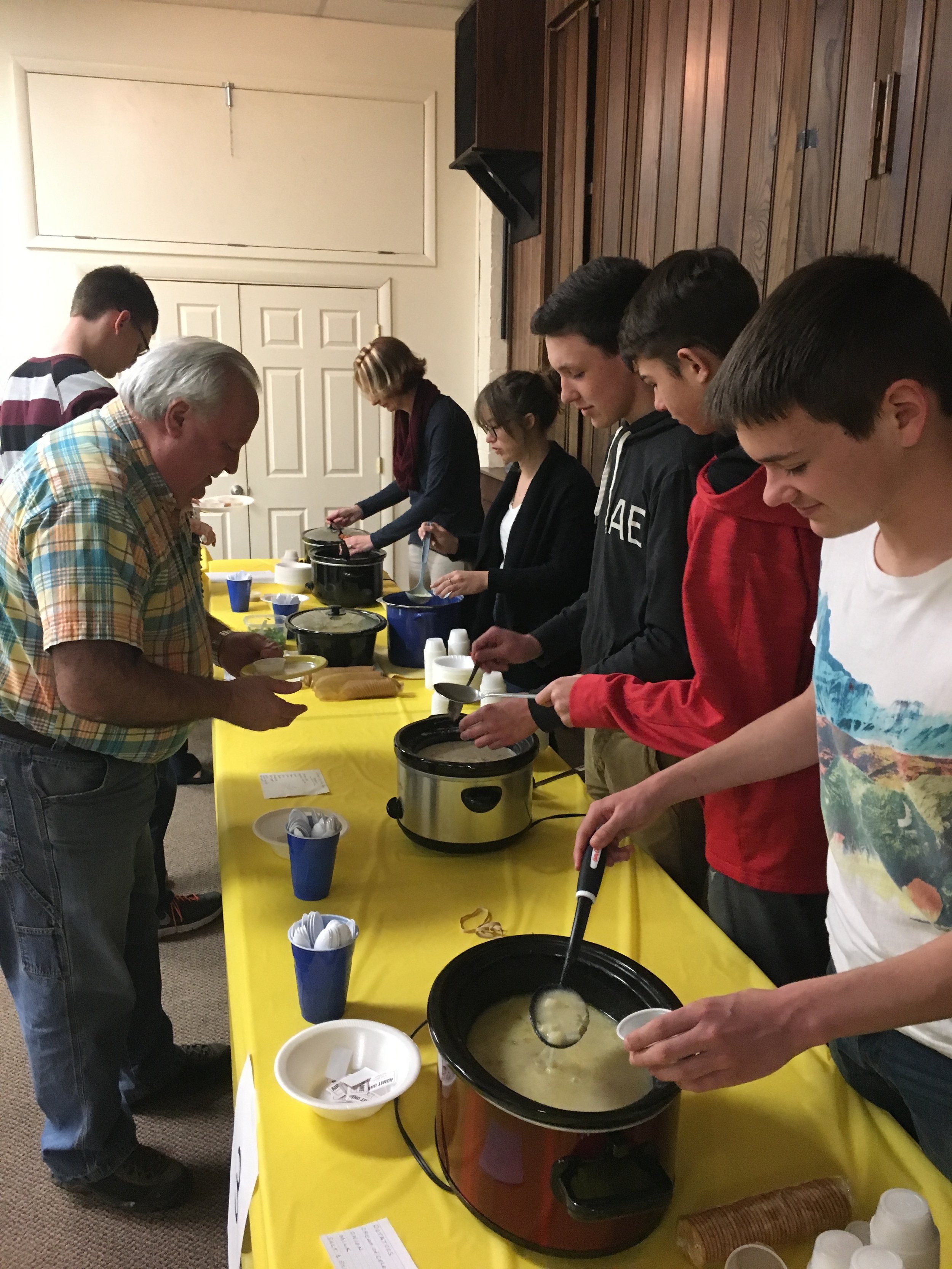 Leadership Breakfast is for all Wheelersburg High School students and staff. It's always on Football Fridays at 7:00AM in the church Fellowship Hall in the church basement. Students are fed breakfast and given a brief talk in leadership. Coach Woodward schedules a different speaker each week. Opportunities to serve include set-up, provide food, prepare and serve food and clean-up.